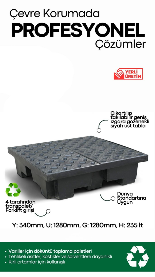 235 LİTRE KİMYASAL DÖKÜNTÜ TOPLAMA PALETİ (RECYCLED)