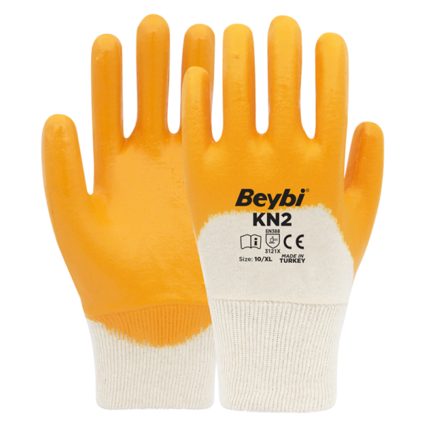 Pamuk astar üzerine sarı nitril kaplı iş eldiveni.