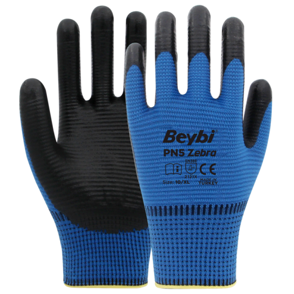 PN5 Zebra Polyester Örme Nitril Eldiven