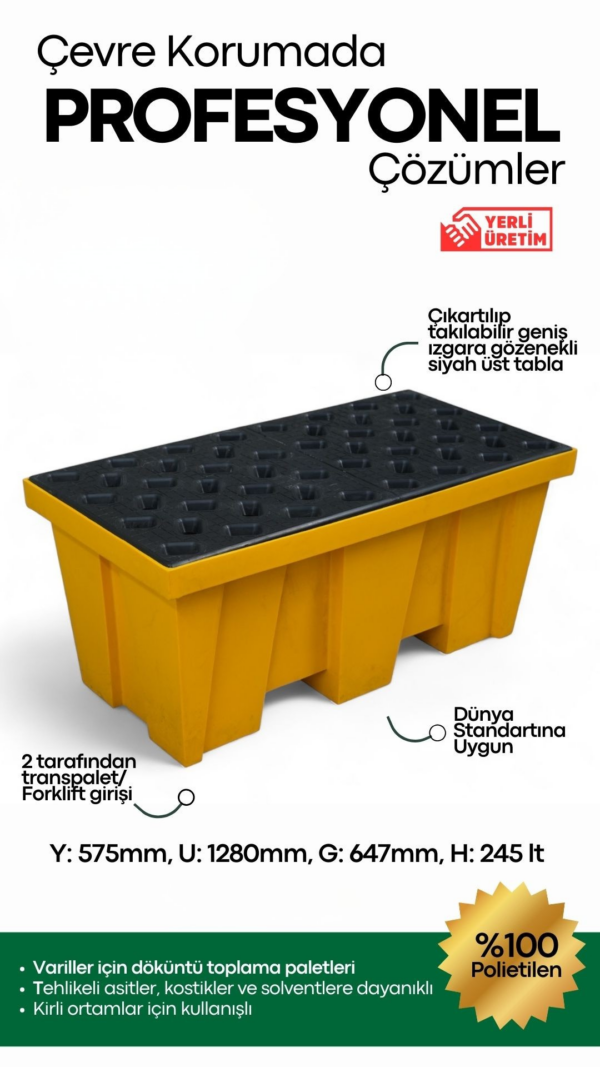 245 LİTRELİK KİMYASAL DÖKÜNTÜ TOPLAMA PALETİ