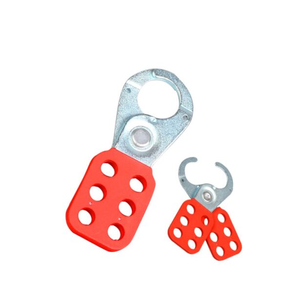 PA enjeksiyon kalıplama. Kanca, metal galvanizli paslanmaz. Kanca çapı, 25 mm (1″), 38 mm (1,5″). Kırmızı, sarı renkler mevcut. 10.5 mm delik çapı , 6 asma kilit. Ölçüsüne uygun tüm kilitleme ekipmanlarıyla enerji izolasyon amaçlı kullanılır.