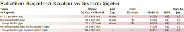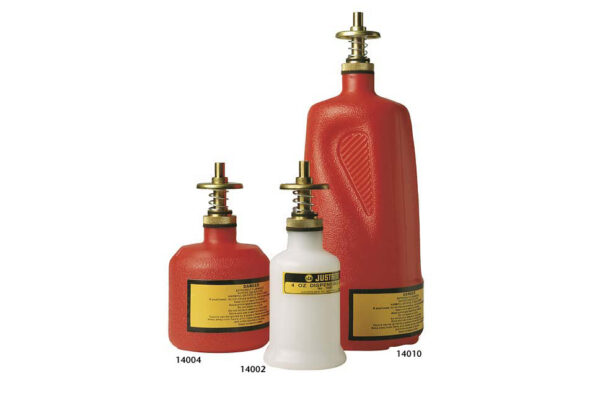 Justrite Polietilen Boşaltma Kapları sıvıların tek elle kolayca uygulama yerine dökülmesini sağlar. Pirinçten yapılmış boşaltma vanaları, sızdırmaz ve kendiliğinden kapanan özellikleriyle döküntüleri minimize eder, fazla sıvı akışını kontrol altına alır. FM onaylı bu pirinç vanalar parlayıcı sıvılar için önerilir. Yüksek yoğunluklu polietilen gövde ele iyi oturacak şekilde tasarlanmıştır. Sıkmalı Şişeler polietilen ve paslanmaz çelik malzemeden üretilmiştir. İçerdiği küresel vana ile küçük parçacıklar ya da yarı mamuller üzerine minimum düzeyde sıvı püskürtülmesi sağlanır. Şişe sıkılınca sıvı şişe içinden hortumun ucuna doğru sıvı akışı sağlanır. İnce hortum ucu sayesinde ulaşılması güç yerlere sıvı uygulaması yapılır.