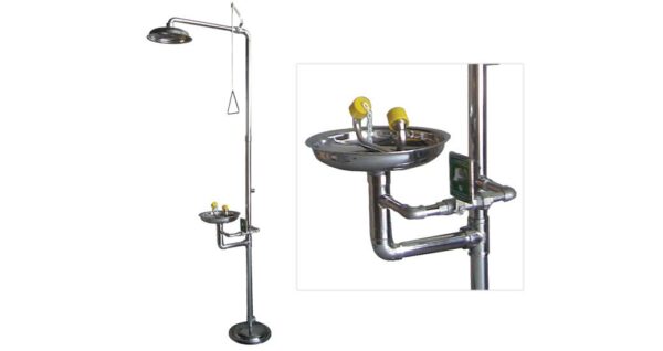 Hem göz yıkama duşu, hem de vücut duşu ayrı ayrı el kumandalıdır. Kendi ayak tablasıyla yere bağlanmaya uygundur. Duş çanağı paslanmaz çelik ve ABS olarak seçilebilir. Tüm boruları paslanmaz çelikten veya galvaniz boyalı imal edilmiştir.