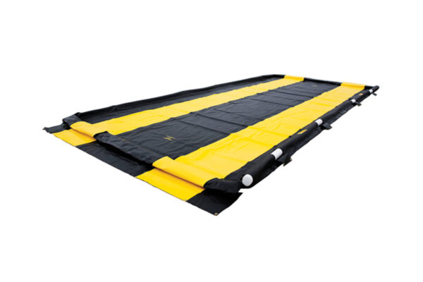 Dayanıklı vinil kaplamalı malzeme, yüksek görünürlük sarı şeritler.