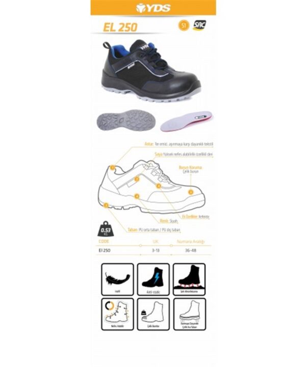 Yeni nesil YDS Professional serisi, nefes alabilirliği artırılmış deri ve her zamanki hafifliğiyle yüksek konfor; burun ve taban koruyucuları ve yüksek kayma direnci ile güvenlik; çekici görünümüyle estetik sağlıyor. Profesyonel yaşam için tüm ihtiyaçlarınız YDS Professional‘de en ekonomik şekilde karşılanıyor.